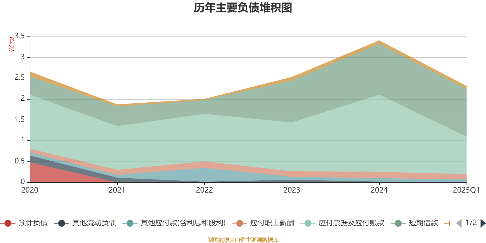 负债重大变化方面,截至2025年一季度末,公司应付票据及应付账款较上年末减少51.22%,占公司总资产比重下降13.46个百分点;短期借款较上年末减少6.55%,占公司总资产比重上升10.3个百分点;应付职工薪酬较上年末减少16.53%,占公司总资产比重上升0.76个百分点;长期借款较上年末没有变化,占公司总资产比重上升0.33个百分点。