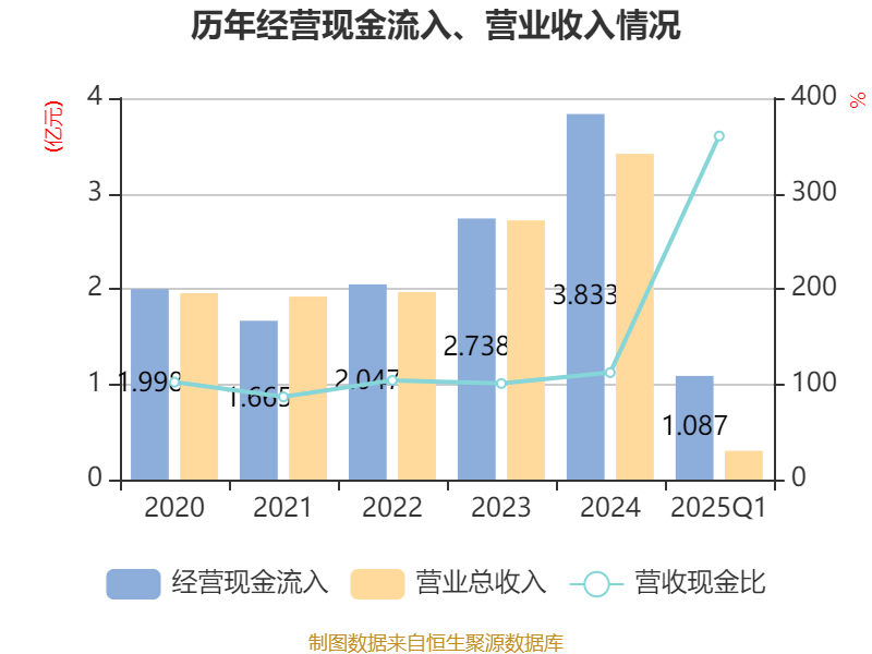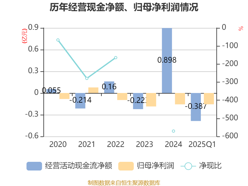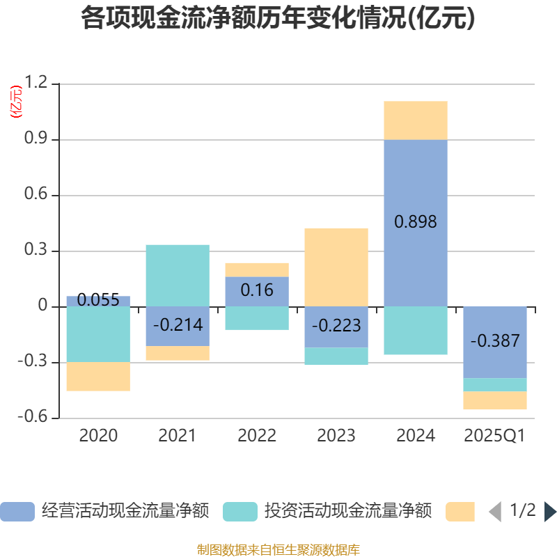 截至2025年一季度末,公司经营活动现金流净额为-3868.79万元,同比减少5006.73万元;筹资活动现金流净额-956.62万元,同比增加223.81万元;投资活动现金流净额-717.41万元,上年同期为-259.71万元。