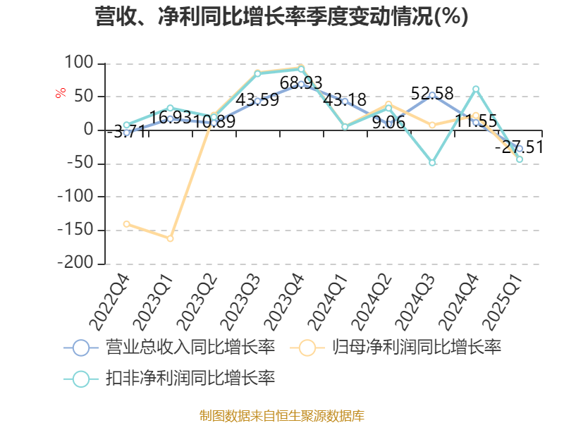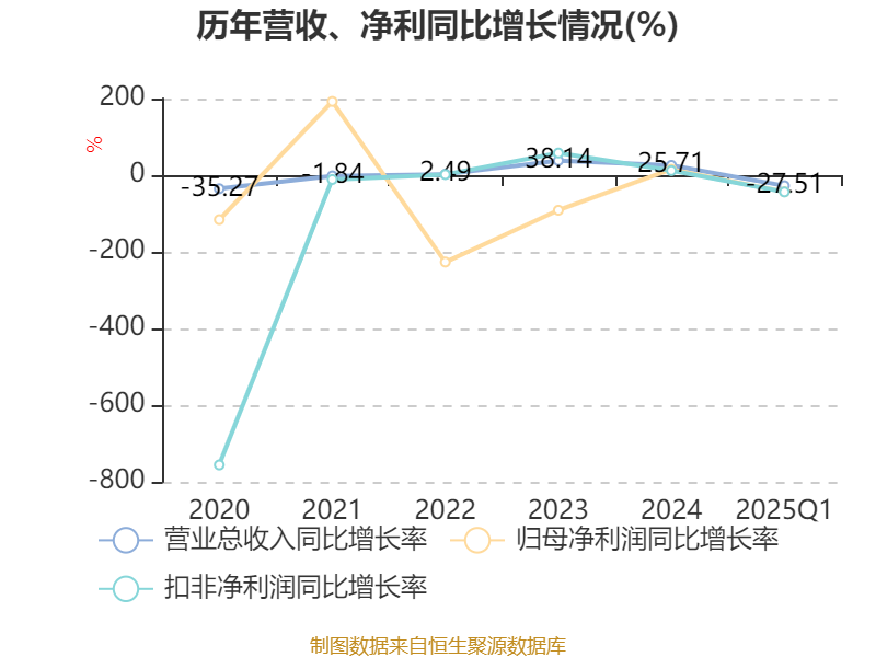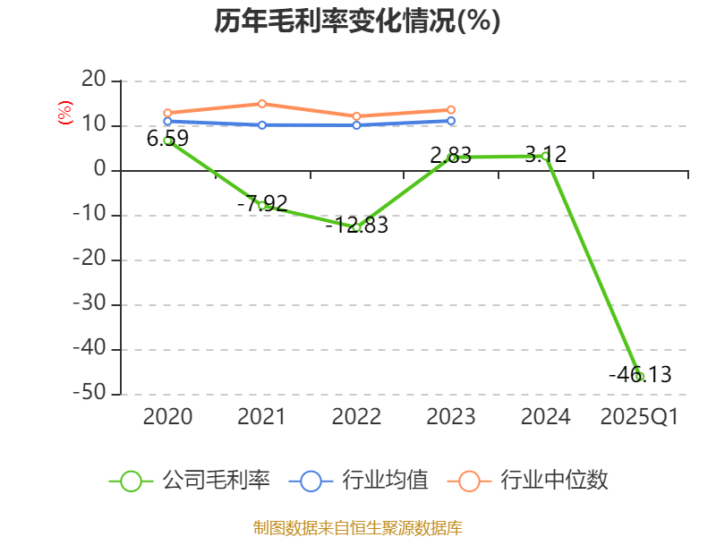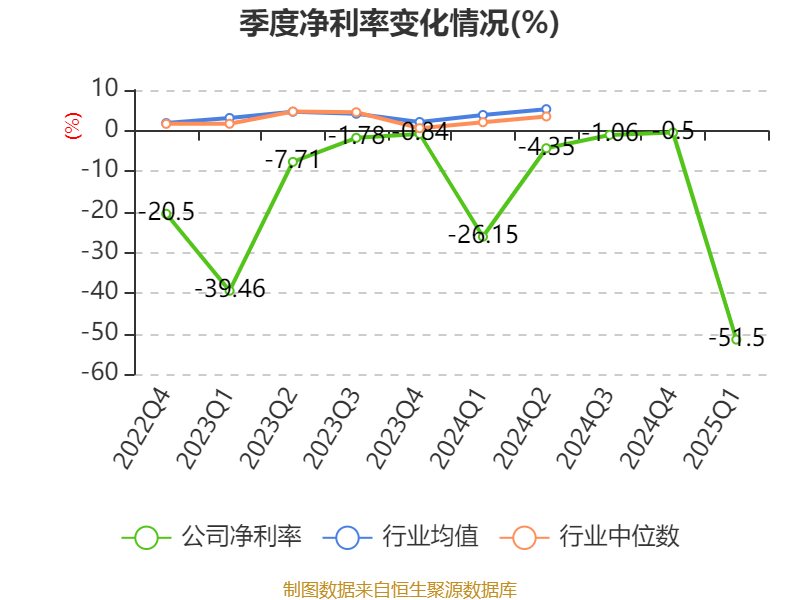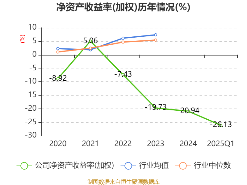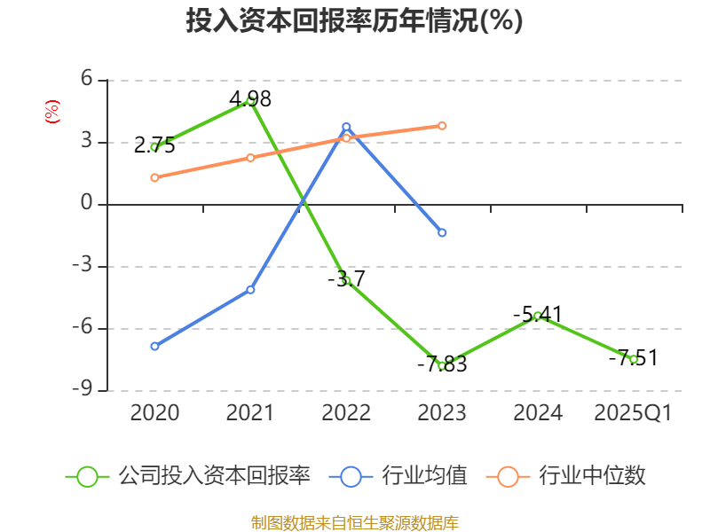 盈利能力方面, 2025年一季度公司加权平均净资产收益率为-26.13%,同比下降12.14个百分点。公司2025年第一季度投入资本回报率为-7.51%,较上年同期下降1.99个百分点。