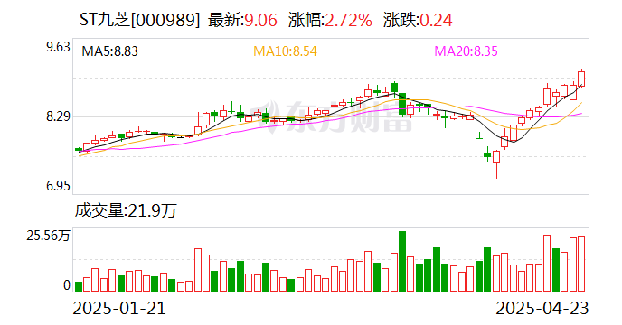 4月23日,ST九芝(维权)(000989)公布2025年一季报,公司营业收入为8.06亿元,同比下降25.4%;归母净利润为1.17亿元,同比下降19.4%;扣非归母净利润为1.14亿元,同比下降17.9%;经营现金流净额为5566万元,同比增长118.4%;EPS(全面摊薄)为0.1362元。