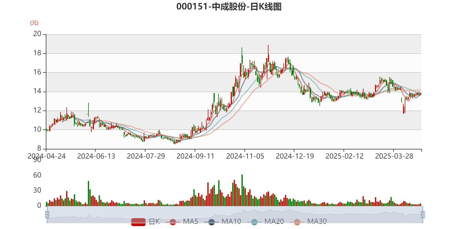 以4月23日收盘价计算,中成股份目前市盈率(TTM)约为-15.75倍,市净率(LF)约13.7倍,市销率(TTM)约4.64倍。