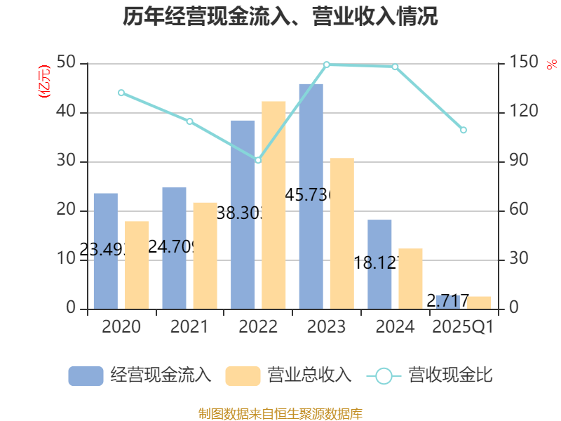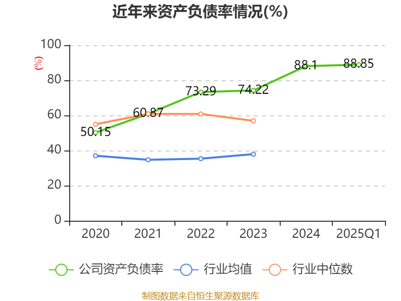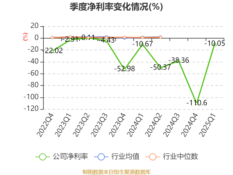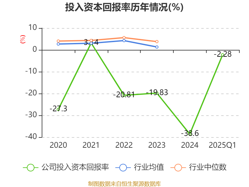 盈利能力方面, 2025年一季度公司加权平均净资产收益率为-7.85%,同比下降1.96个百分点。公司2025年第一季度投入资本回报率为-2.28%,较上年同期上升0.25个百分点。