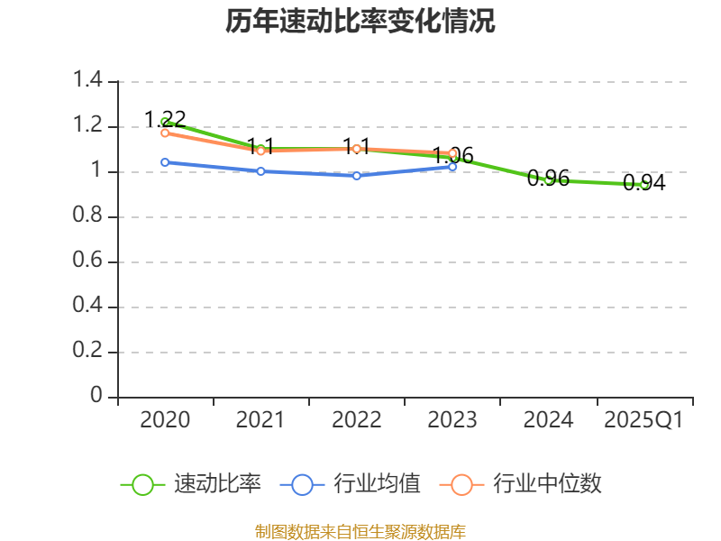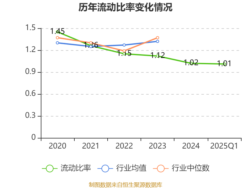 2025年第一季度,公司流动比率为1.01,速动比率为0.94。