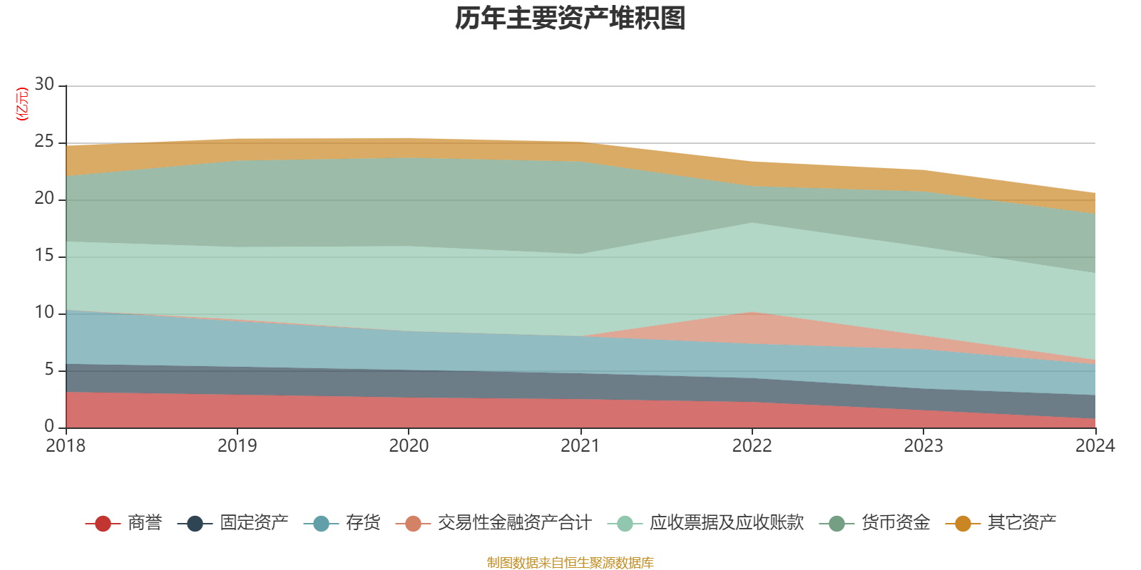 资产重大变化方面,截至2024年末,公司货币资金较上年末增加7.17%,占公司总资产比重上升3.79个百分点;交易性金融资产合计较上年末减少67.5%,占公司总资产比重下降3.42个百分点;商誉较上年末减少49.27%,占公司总资产比重下降2.96个百分点;应收票据及应收账款较上年末减少2.26%,占公司总资产比重上升2.51个百分点。