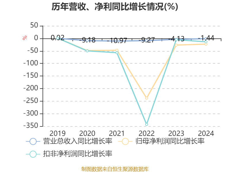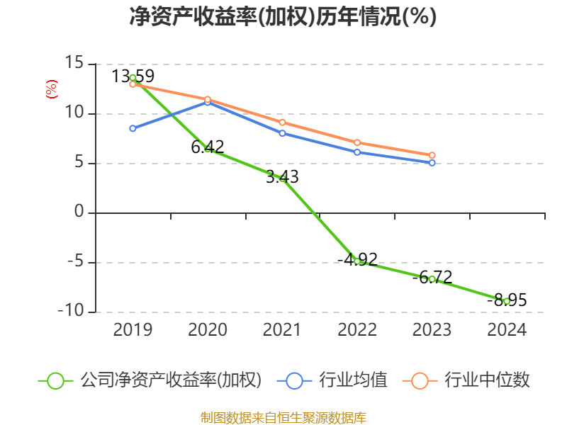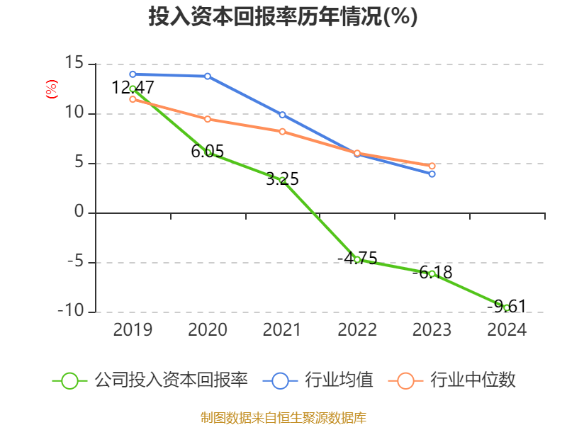 数据显示,2024年公司加权平均净资产收益率为-8.95%,较上年同期下降2.23个百分点。公司2024年投入资本回报率为-9.61%,较上年同期下降3.43个百分点。