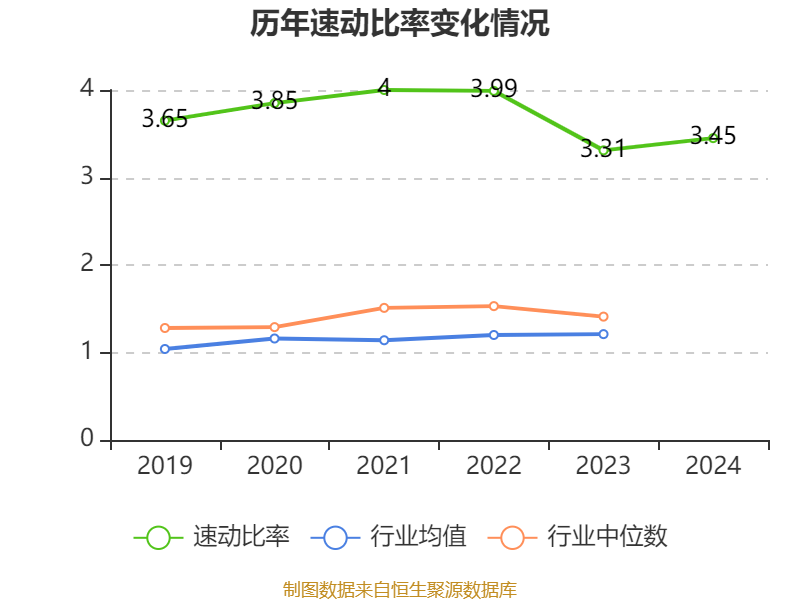 2024年,公司流动比率为4.12,速动比率为3.45。