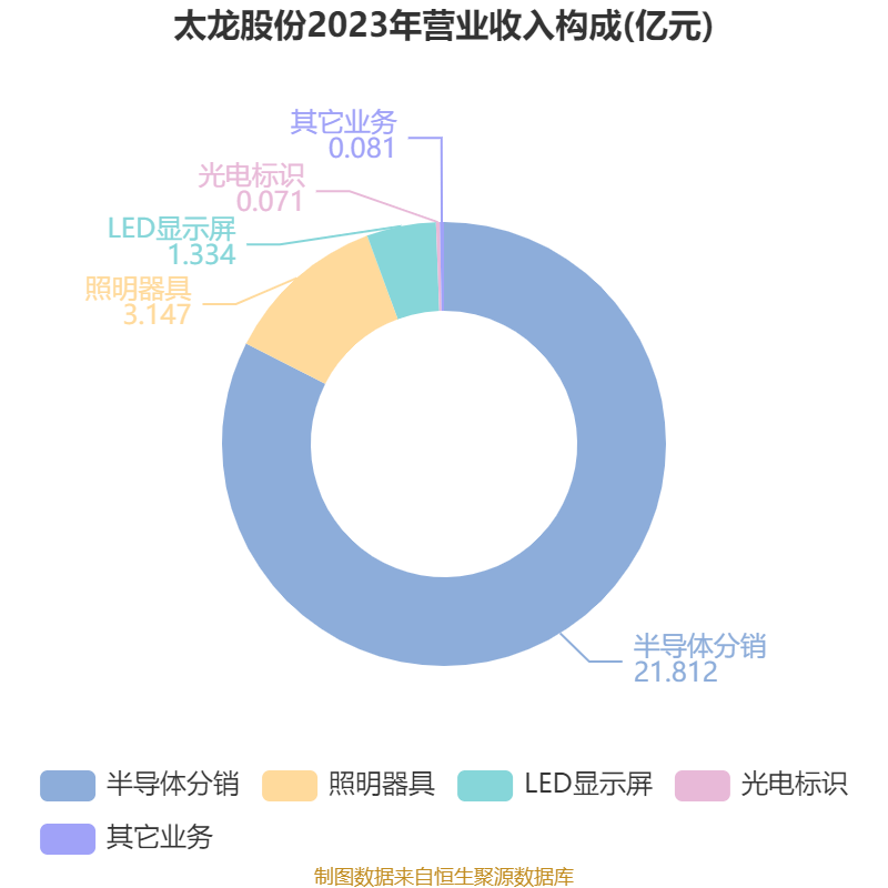 资料显示,公司主营业务收入以半导体分销业务为主,以商业照明业务为辅。