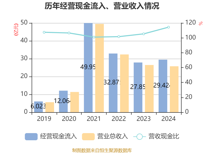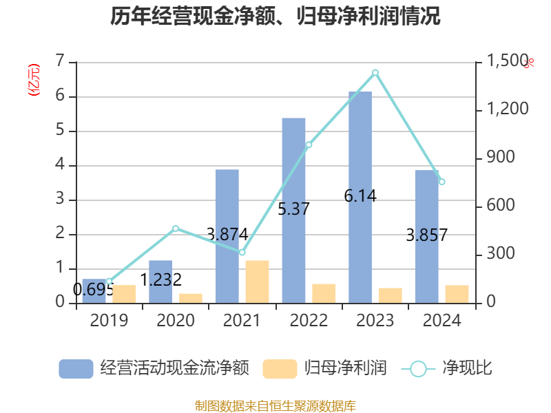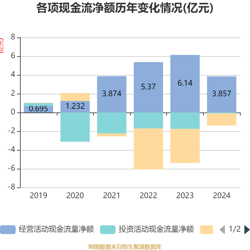 截至2024年,公司经营活动现金流净额为3.86亿元,同比下降37.19%;筹资活动现金流净额-1.3亿元,同比增加2.33亿元;投资活动现金流净额-894.32万元,上年同期为-1.75亿元。