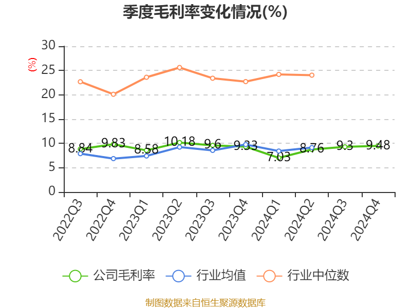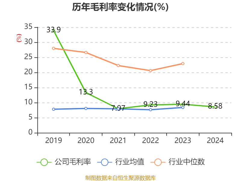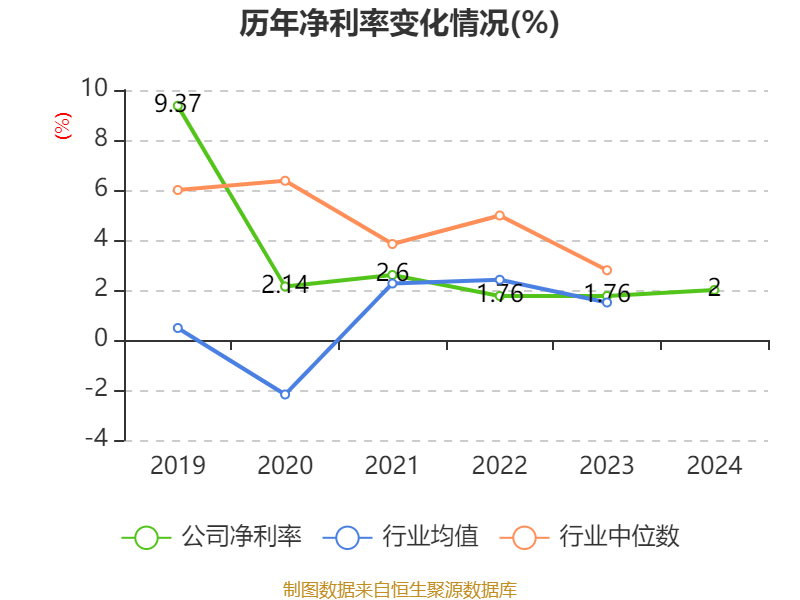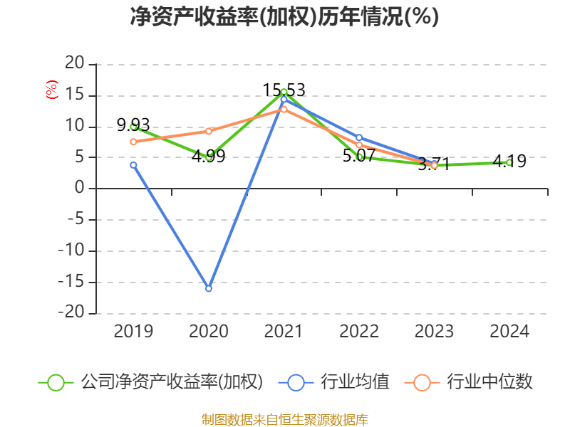 数据显示,2024年公司加权平均净资产收益率为4.19%,较上年同期上升0.48个百分点。公司2024年投入资本回报率为3.42%,较上年同期下降0.56个百分点。