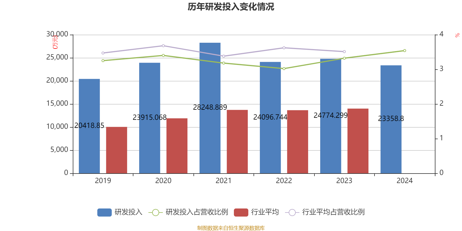 2024年全年,公司研发投入金额为2.34亿元,同比下降5.71%;研发投入占营业收入比例为3.54%,相比上年同期上升0.22个百分点。此外,公司全年研发投入资本化率为0%。