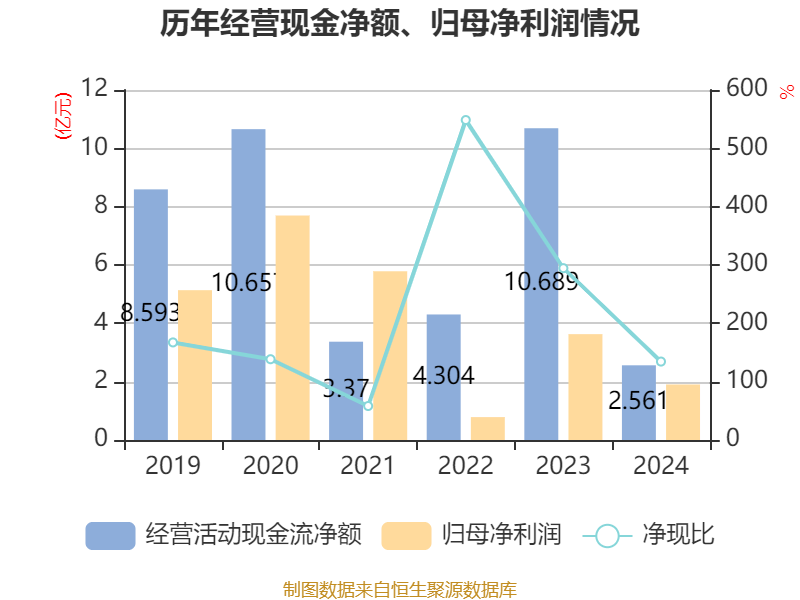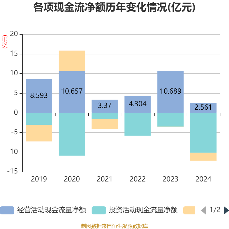 截至2024年,公司经营活动现金流净额为2.56亿元,同比下降76.04%;筹资活动现金流净额-2.03亿元,同比减少1.97亿元;投资活动现金流净额-10.15亿元,上年同期为-3.5亿元。