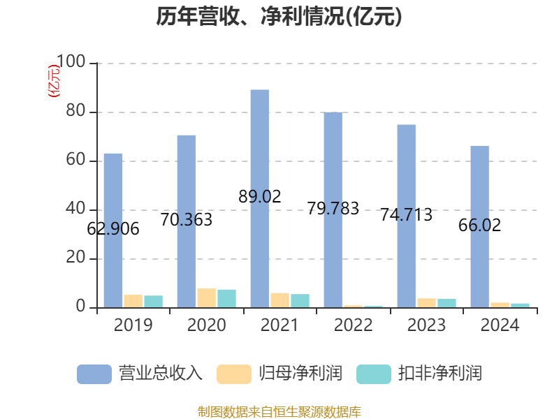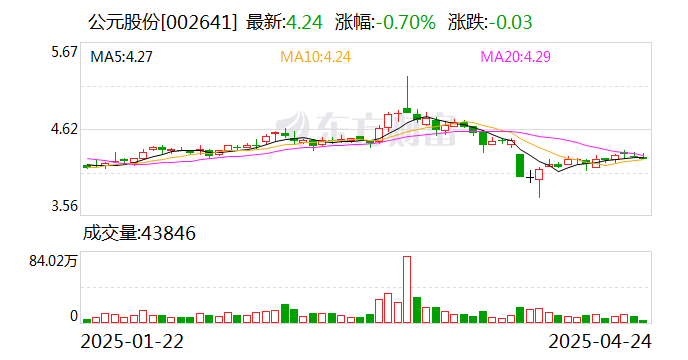 中证智能财讯公元股份(002641)4月24日披露2024年年度报告。2024年,公司实现营业总收入66.02亿元,同比下降11.64%;归母净利润1.9亿元,同比下降47.52%;扣非净利润1.52亿元,同比下降55.50%;经营活动产生的现金流量净额为2.56亿元,同比下降76.04%;报告期内,公元股份基本每股收益为0.16元,加权平均净资产收益率为3.50%。公司2024年度分配预案为:拟向全体股东每10股派现0.5元(含税)。