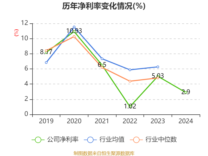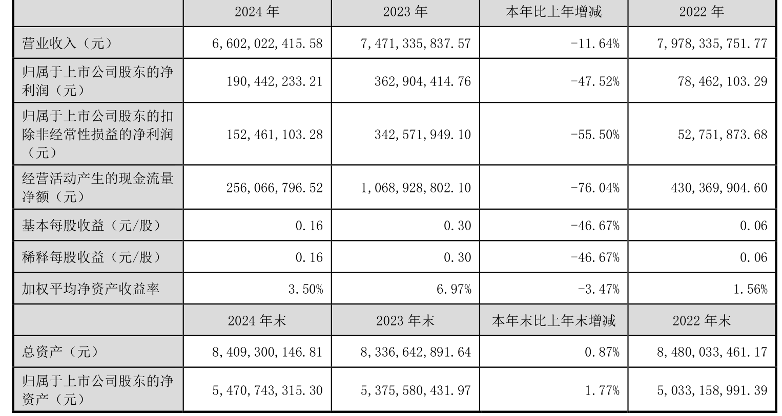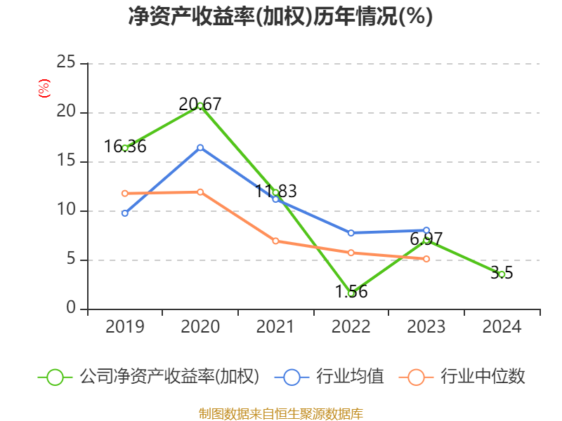 数据显示,2024年公司加权平均净资产收益率为3.5%,较上年同期下降3.47个百分点。公司2024年投入资本回报率为3.01%,较上年同期下降3.19个百分点。