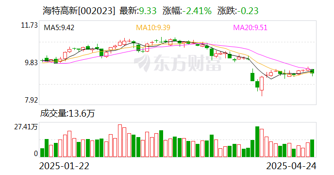 4月23日,海特高新(002023)公布2025年一季报,公司营业收入为3.05亿元,同比上升14.1%;归母净利润为1882万元,同比下降26.9%;扣非归母净利润为1765万元,同比上升16.8%;经营现金流净额为-993万元,同比下降113.0%;EPS(全面摊薄)为0.0254元。