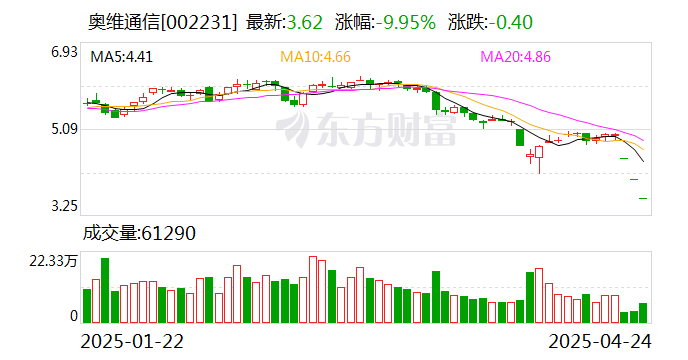 奥维通信(维权)今日跌停,全天换手率2.08%,成交额2218.70万元。龙虎榜数据显示,机构净买入62.77万元,营业部席位合计净卖出230.45万元。