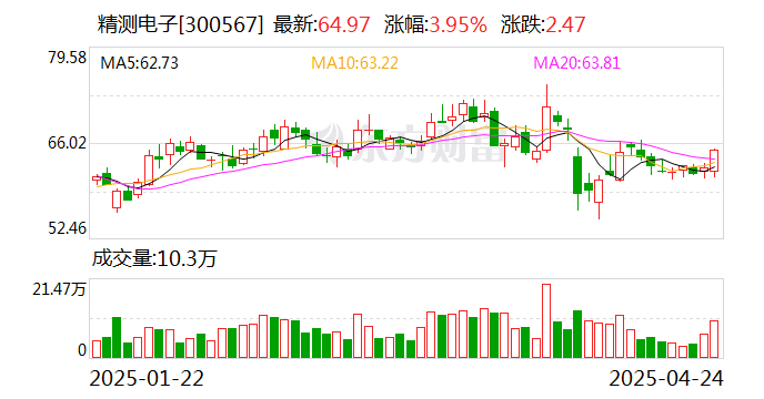 4月24日,精测电子(300567)公布2025年一季报,公司营业收入为6.89亿元,同比上升64.9%;归母净利润自去年同期亏损1593万元成功扭亏,实现归母净利润3760万元;扣非归母净利润自去年同期亏损2372万元成功扭亏,实现扣非归母净利润1172万元;经营现金流净额为-2.88亿元,同比下降243.8%;EPS(全面摊薄)为0.1344元。