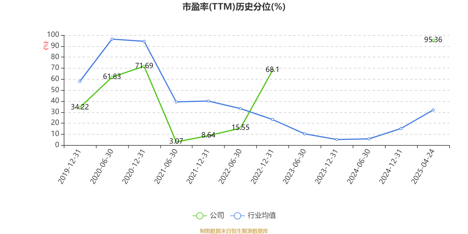 市盈率、市净率为负时,不显示当期分位数,会导致折线图中断。