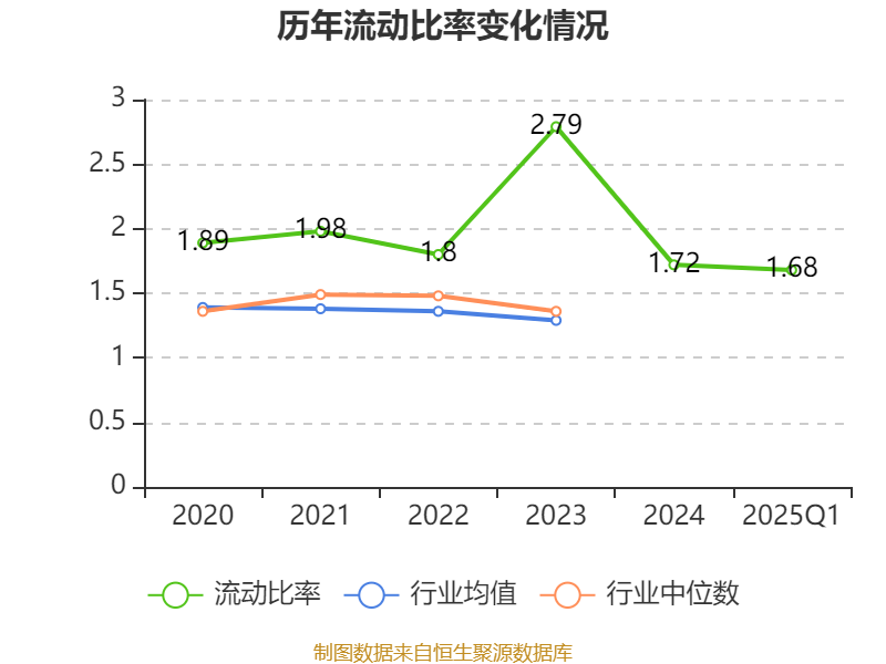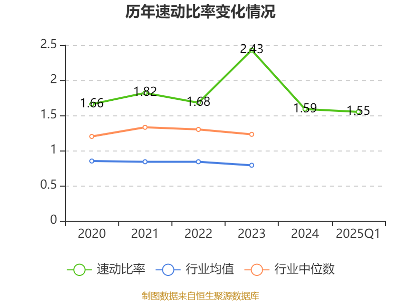 2025年第一季度,公司流动比率为1.68,速动比率为1.55。