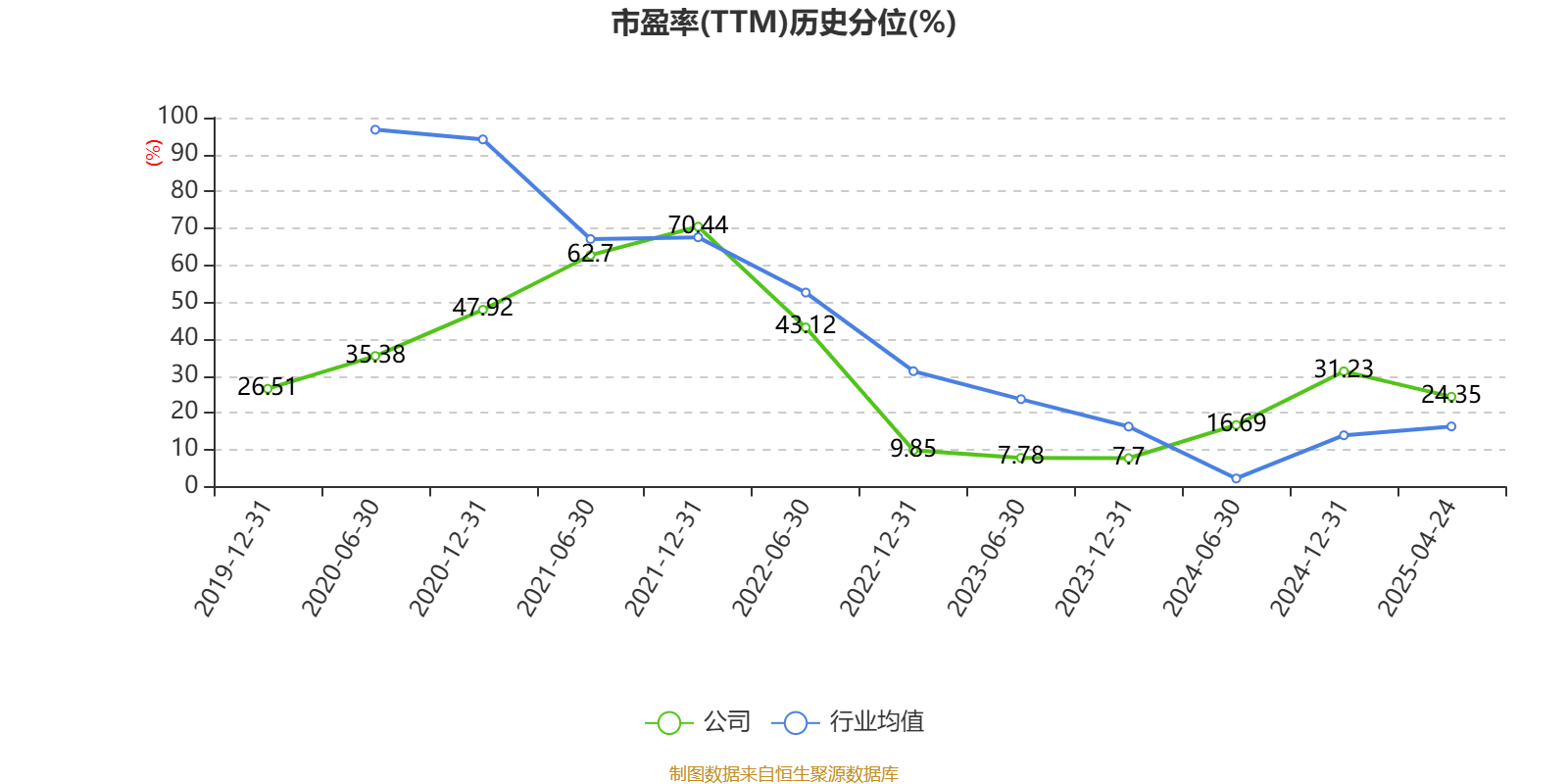 市盈率、市净率为负时,不显示当期分位数,会导致折线图中断。