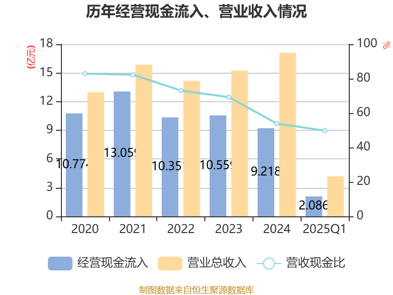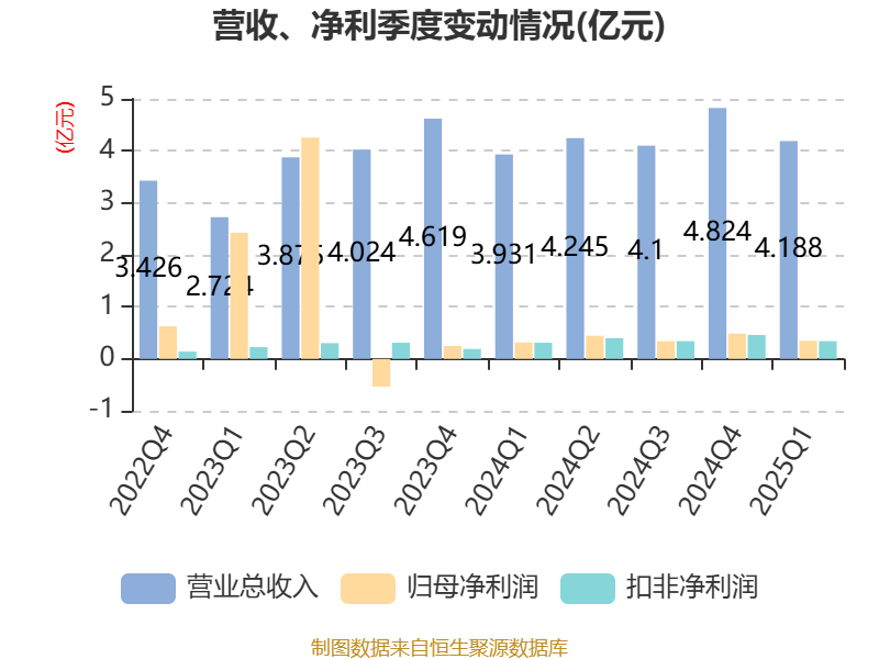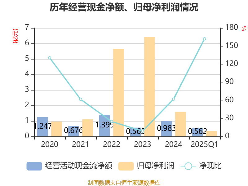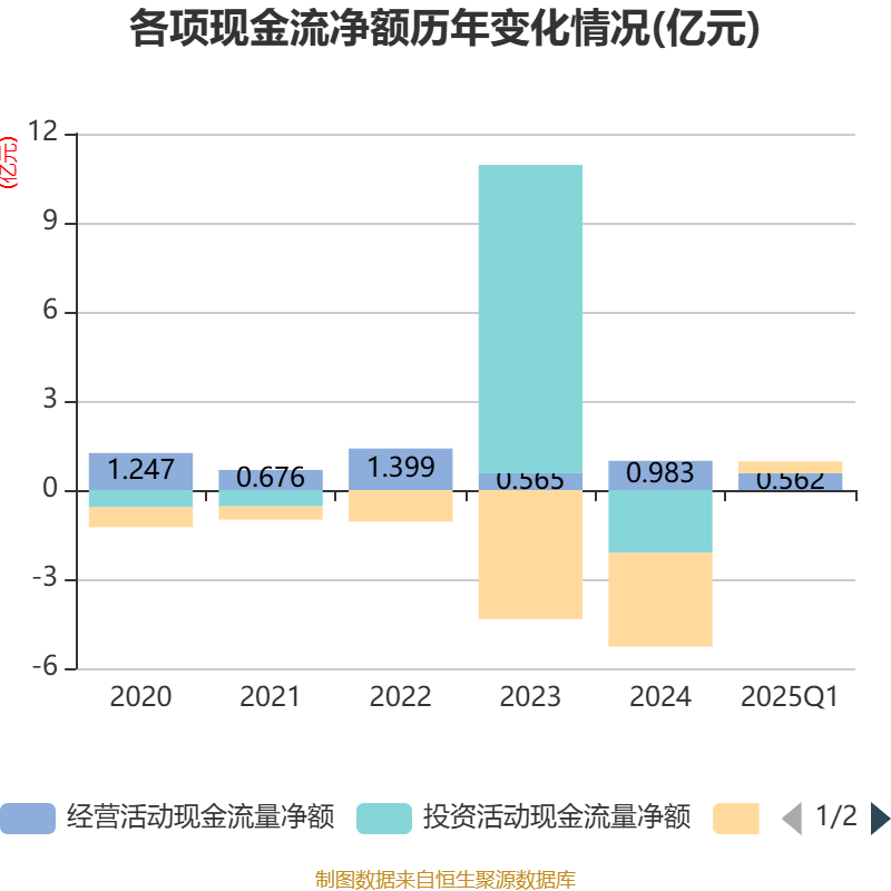 截至2025年一季度末,公司经营活动现金流净额为5619.41万元,同比增长47.08%;筹资活动现金流净额3998.59万元,同比增加500.74万元;投资活动现金流净额35.82万元,上年同期为8.82万元。