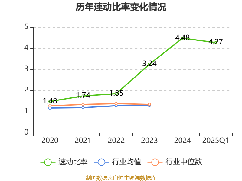 2025年第一季度,公司流动比率为4.66,速动比率为4.27。