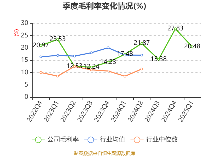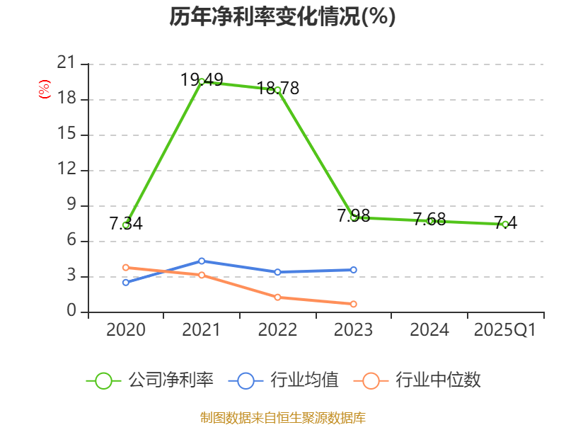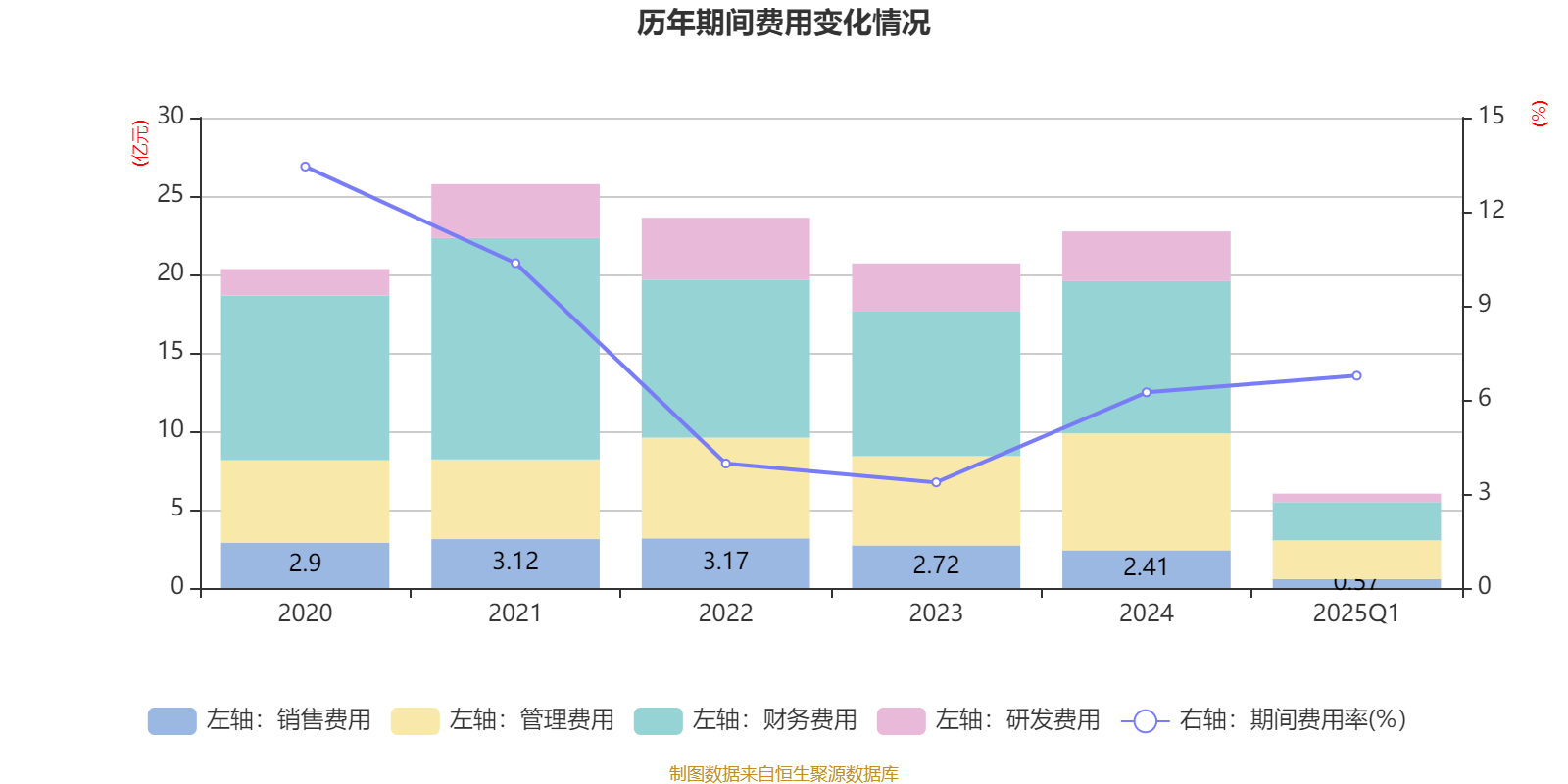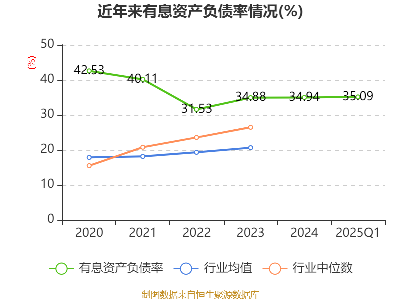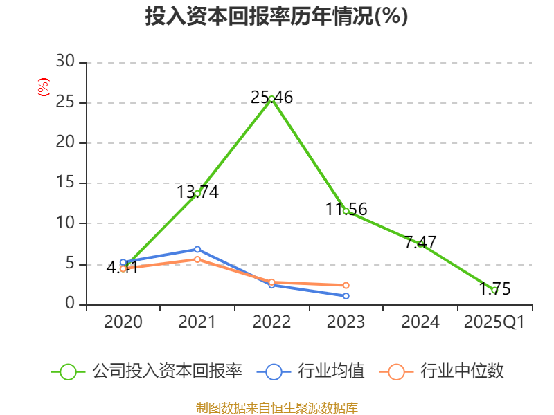 盈利能力方面, 2025年一季度公司加权平均净资产收益率为2.54%,同比下降0.21个百分点。公司2025年第一季度投入资本回报率为1.75%,较上年同期下降0.2个百分点。