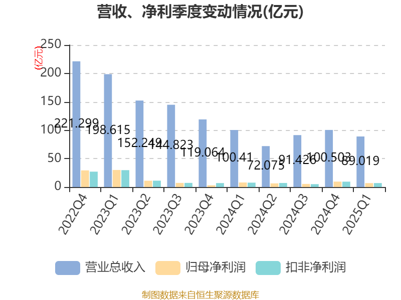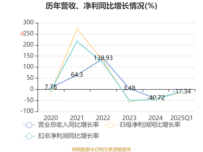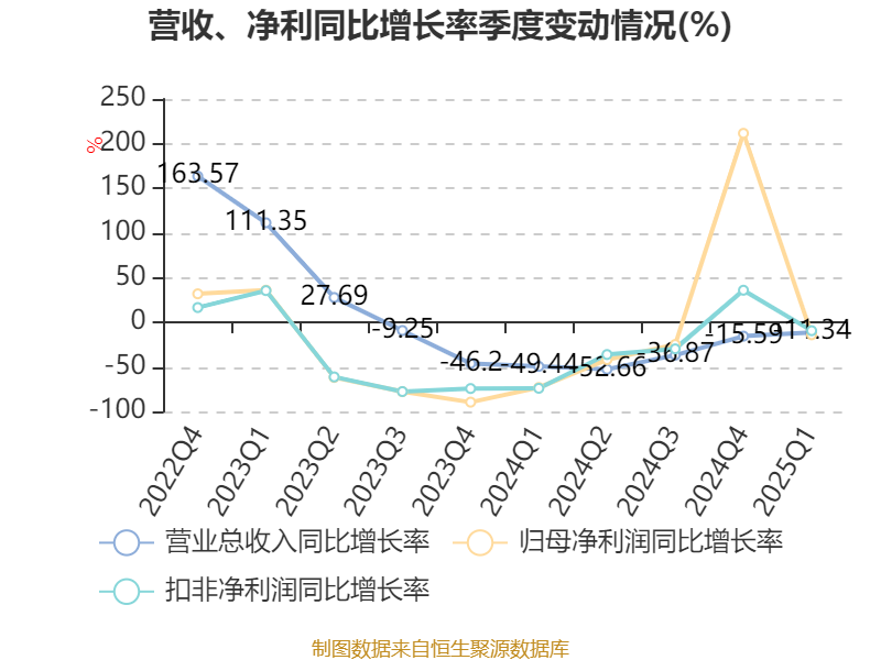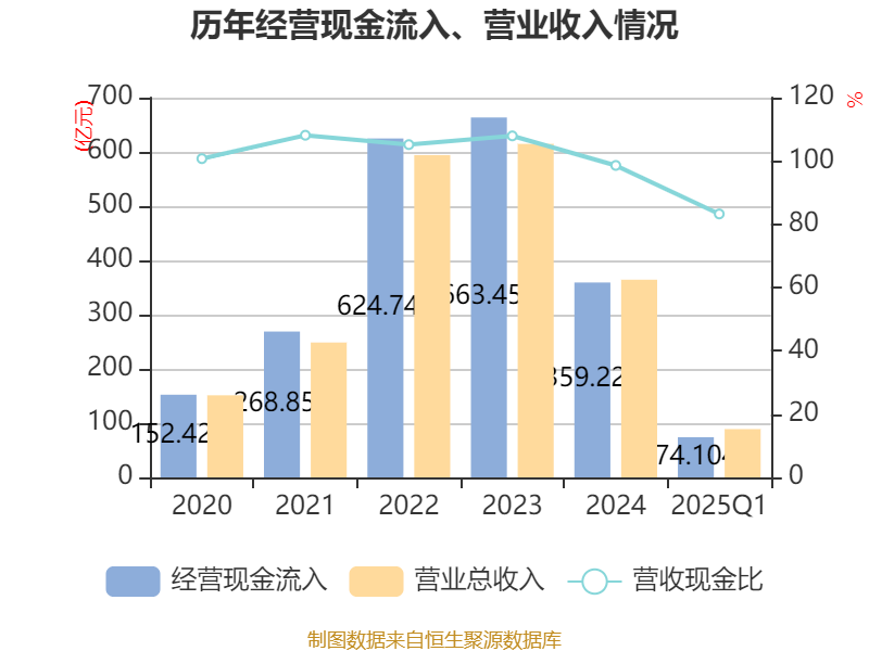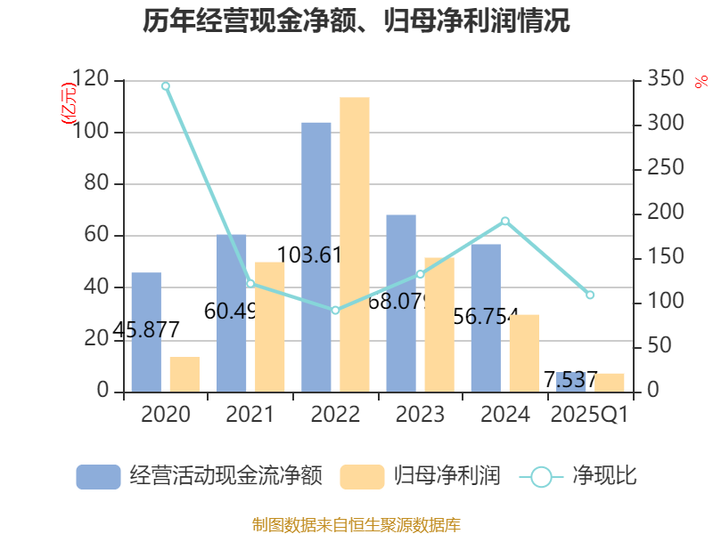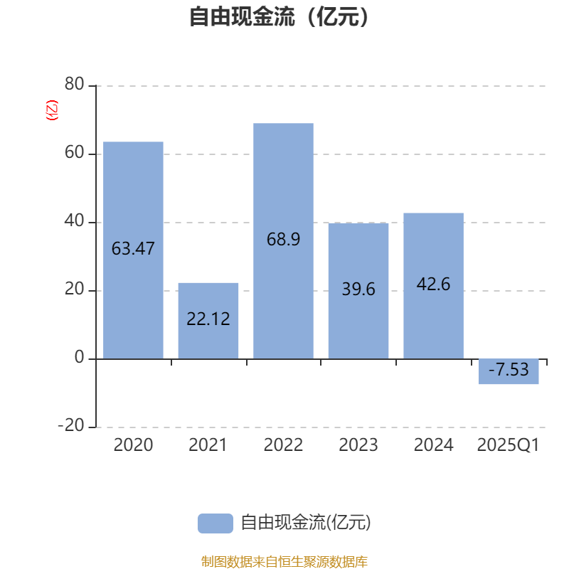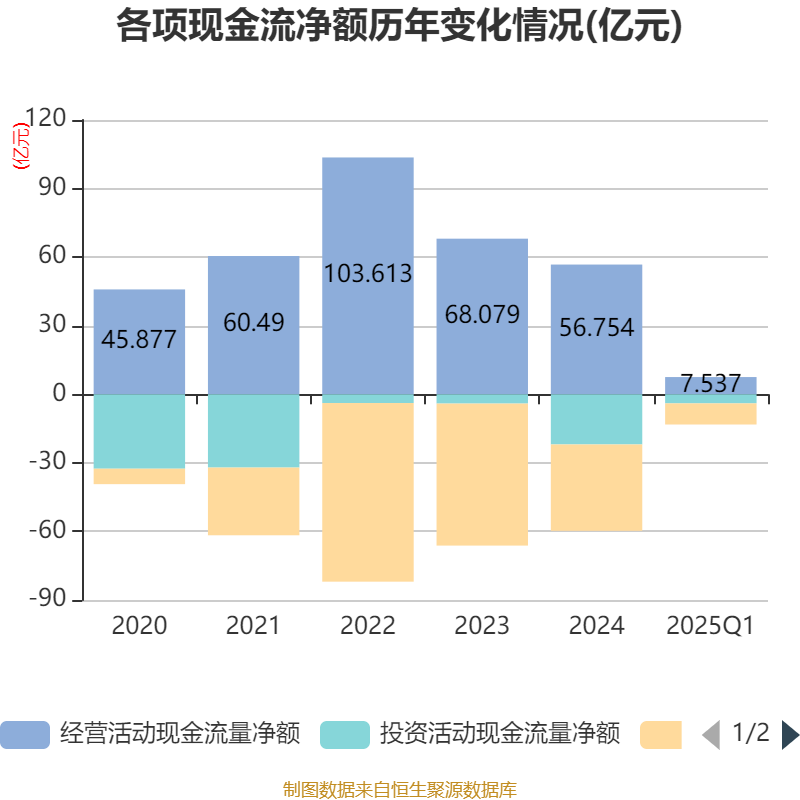 截至2025年一季度末,公司经营活动现金流净额为7.54亿元,同比下降55.94%;筹资活动现金流净额-9.23亿元,同比减少13.91亿元;投资活动现金流净额-3.98亿元,上年同期为-5.21亿元。