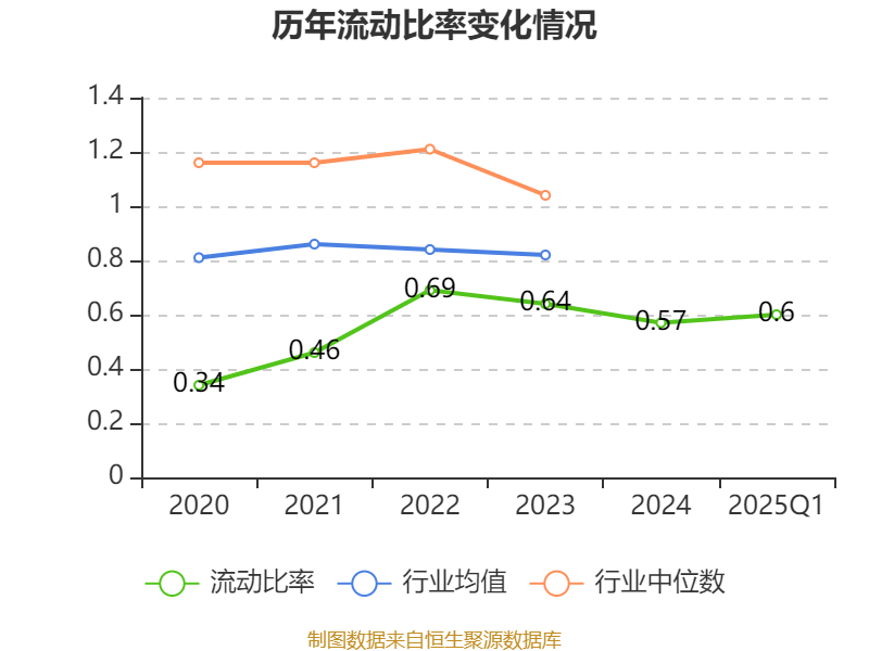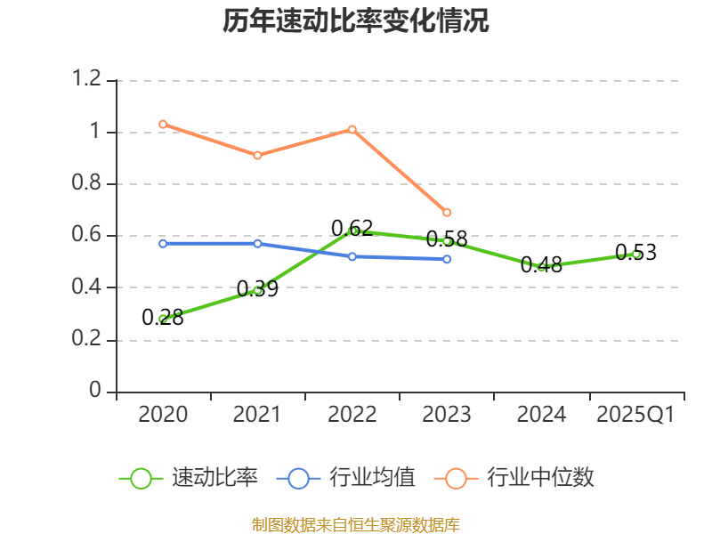 2025年第一季度,公司流动比率为0.6,速动比率为0.53。