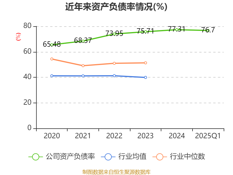 负债重大变化方面,截至2025年一季度末,公司一年内到期的非流动负债较上年末减少45.91%,占公司总资产比重下降6.5个百分点;短期借款较上年末增加28.66%,占公司总资产比重上升5.46个百分点;长期借款较上年末增加6.11%,占公司总资产比重上升2.23个百分点;应付票据及应付账款较上年末减少17.35%,占公司总资产比重下降1.77个百分点。