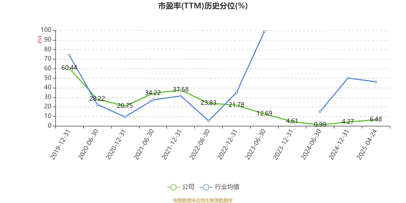 市盈率、市净率为负时,不显示当期分位数,会导致折线图中断。