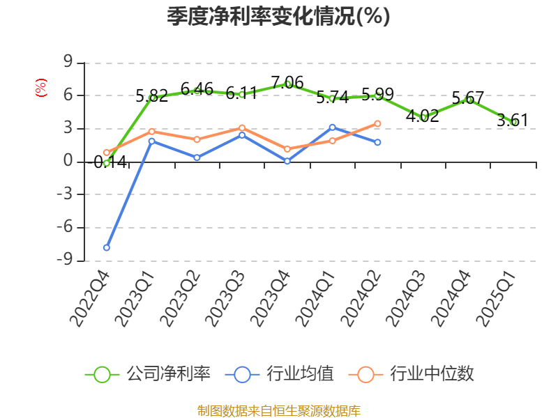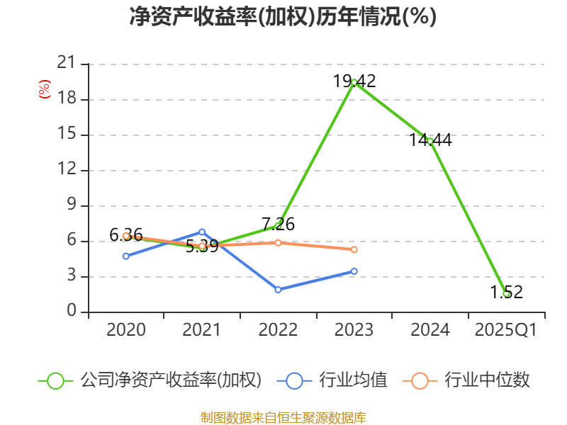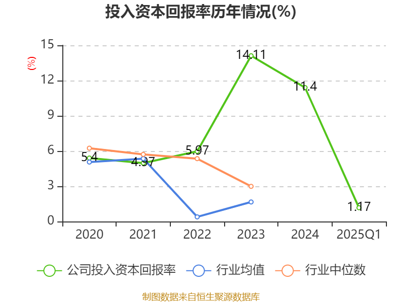 盈利能力方面, 2025年一季度公司加权平均净资产收益率为1.52%,同比下降2.33个百分点。公司2025年第一季度投入资本回报率为1.17%,较上年同期下降1.58个百分点。