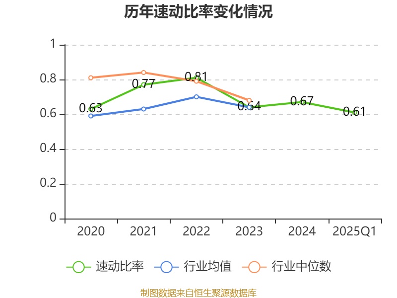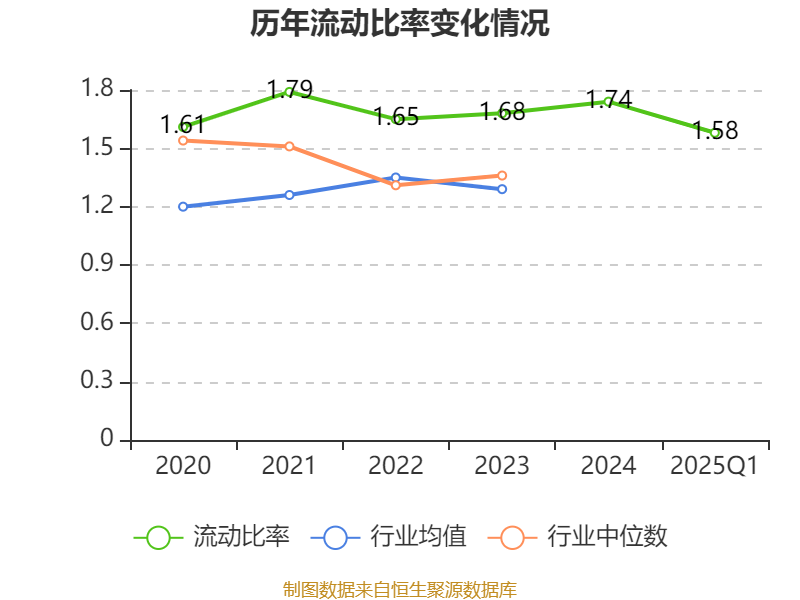 2025年第一季度,公司流动比率为1.58,速动比率为0.61。