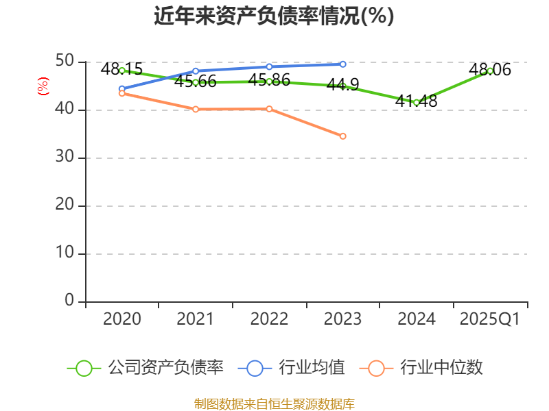 负债重大变化方面,截至2025年一季度末,公司短期借款较上年末增加67.11%,占公司总资产比重上升8.06个百分点;应付票据及应付账款较上年末减少16.99%,占公司总资产比重下降2.66个百分点;合同负债较上年末增加66.27%,占公司总资产比重上升1.37个百分点;应付职工薪酬较上年末减少1.46%,占公司总资产比重下降0.31个百分点。