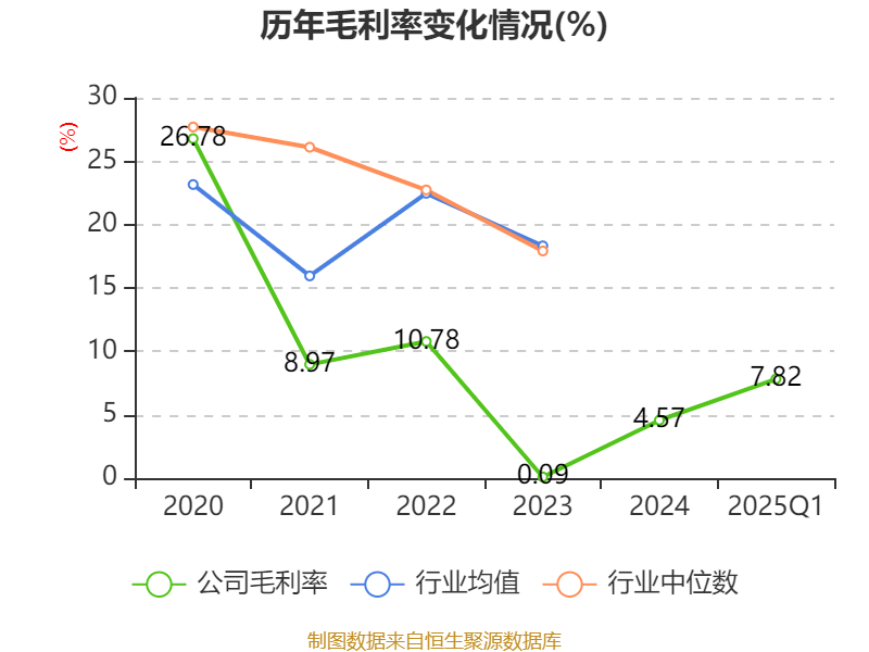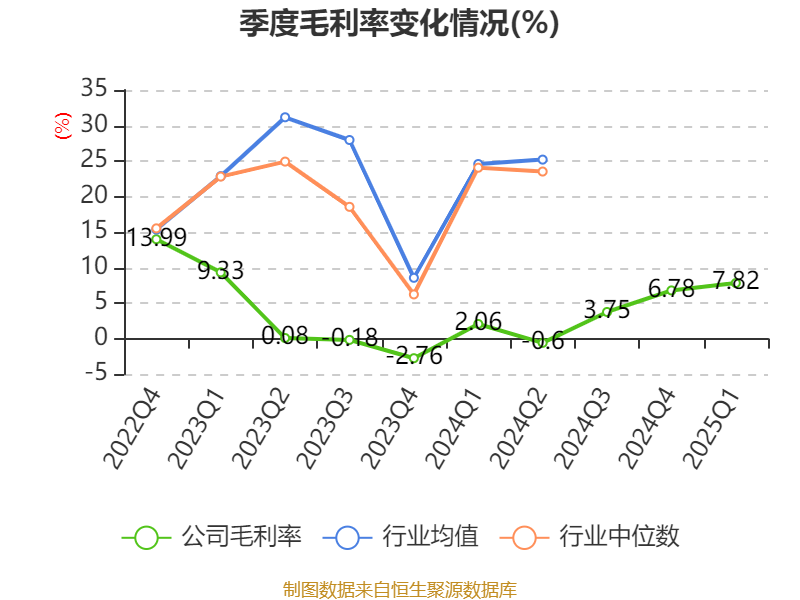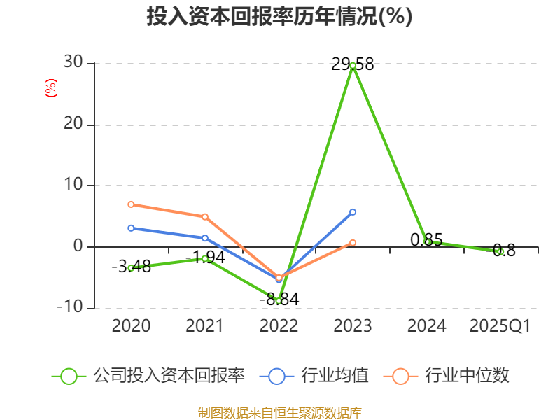 盈利能力方面, 2025年一季度公司加权平均净资产收益率为-2.44%,同比上升0.85个百分点。公司2025年第一季度投入资本回报率为-0.8%,较上年同期上升0.16个百分点。