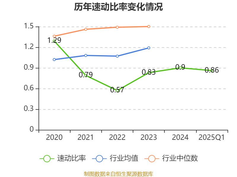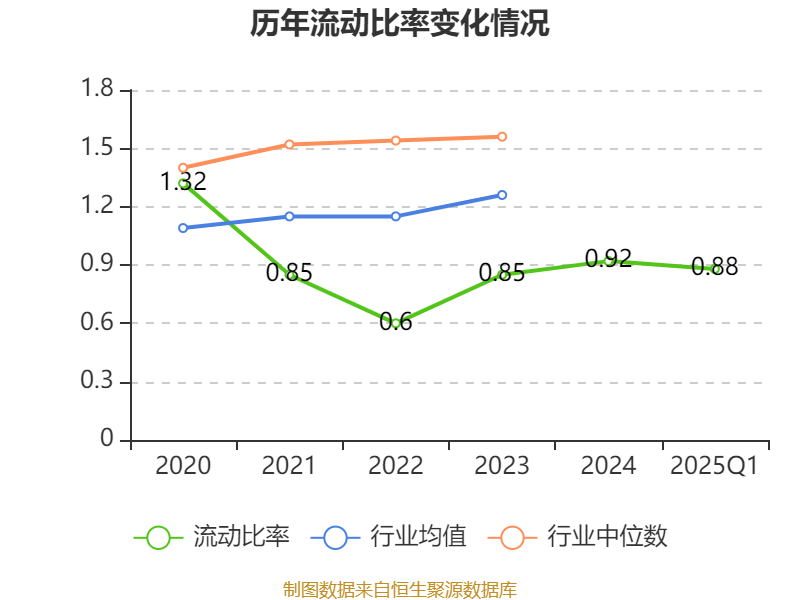 2025年第一季度,公司流动比率为0.88,速动比率为0.86。