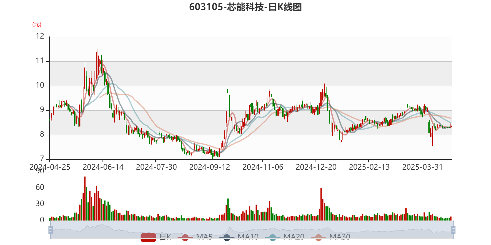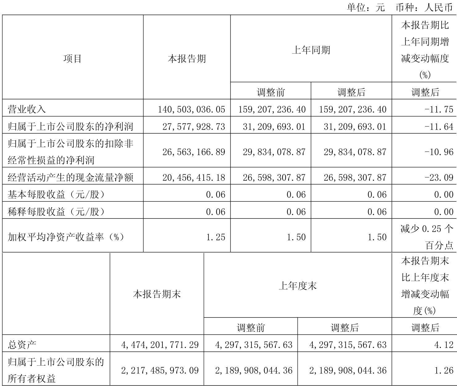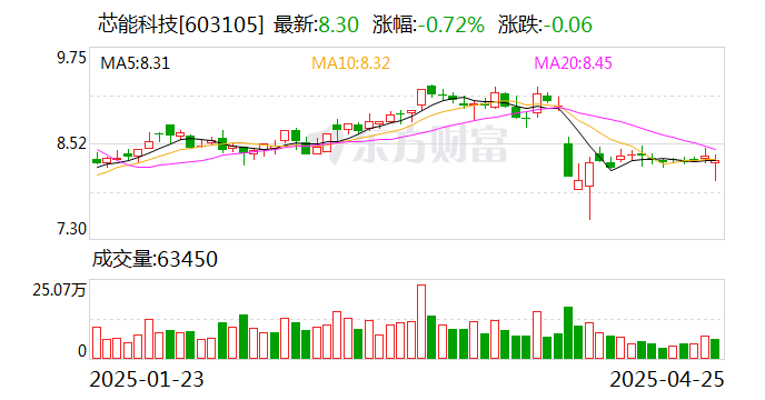 中证智能财讯芯能科技(603105)4月25日披露2025年第一季度报告。公司实现营业总收入1.41亿元,同比下降11.75%;归母净利润2757.79万元,同比下降11.64%;扣非净利润2656.32万元,同比下降10.96%;经营活动产生的现金流量净额为2045.64万元,同比下降23.09%;报告期内,芯能科技基本每股收益为0.06元,加权平均净资产收益率为1.25%。