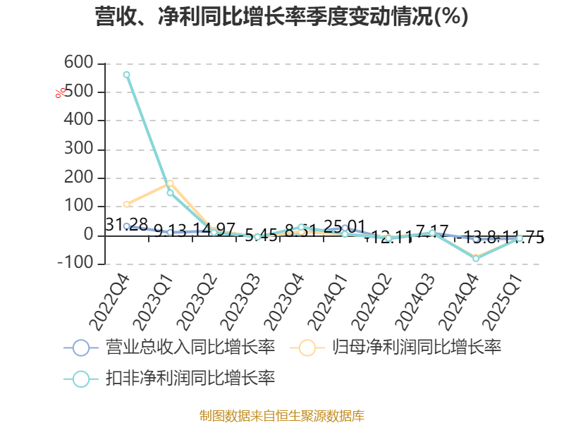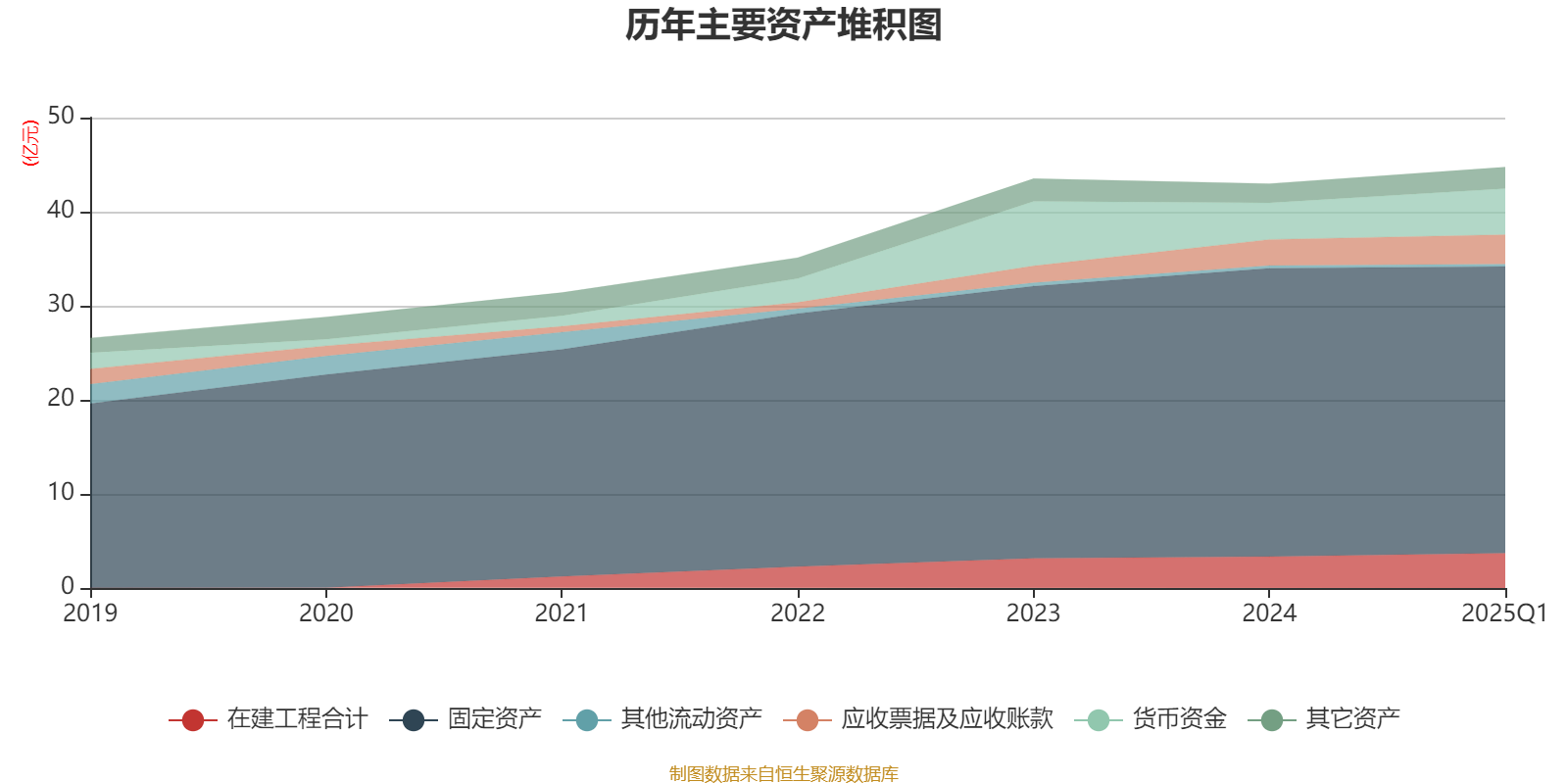 资产重大变化方面,截至2025年一季度末,公司固定资产较上年末减少0.59%,占公司总资产比重下降3.22个百分点;货币资金较上年末增加26.17%,占公司总资产比重上升1.92个百分点;应收票据及应收账款较上年末增加12.89%,占公司总资产比重上升0.54个百分点;在建工程合计较上年末增加11%,占公司总资产比重上升0.51个百分点。