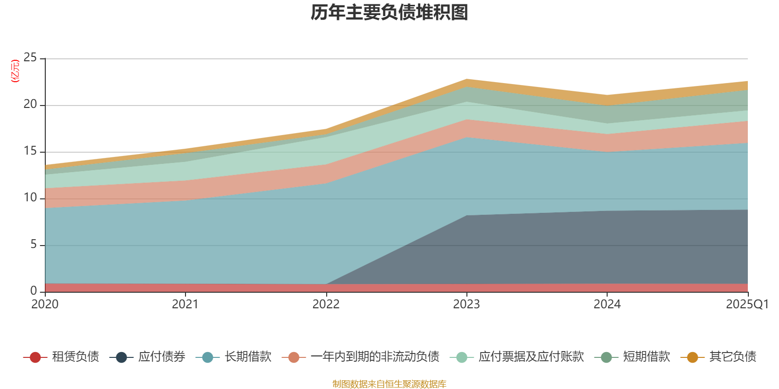 负债重大变化方面,截至2025年一季度末,公司长期借款较上年末增加13.72%,占公司总资产比重上升1.35个百分点;一年内到期的非流动负债较上年末增加21.99%,占公司总资产比重上升0.77个百分点;短期借款较上年末增加15.32%,占公司总资产比重上升0.48个百分点;应付债券较上年末增加1.65%,占公司总资产比重下降0.43个百分点。