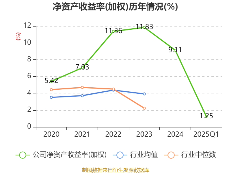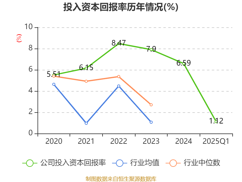 盈利能力方面, 2025年一季度公司加权平均净资产收益率为1.25%,同比下降0.25个百分点。公司2025年第一季度投入资本回报率为1.12%,较上年同期下降0.1个百分点。