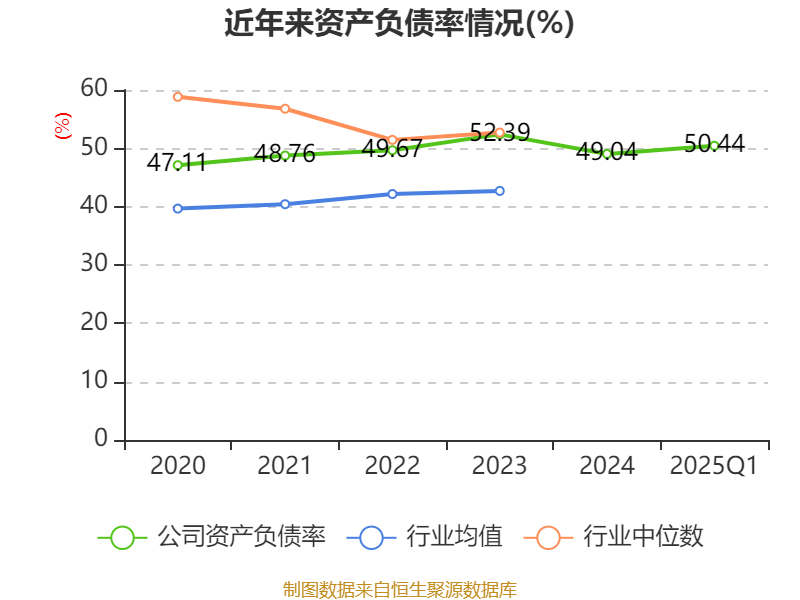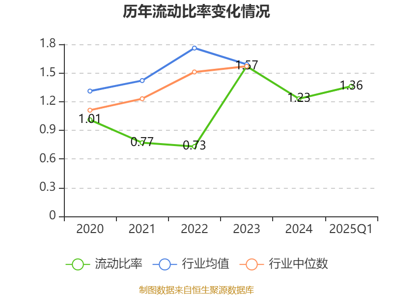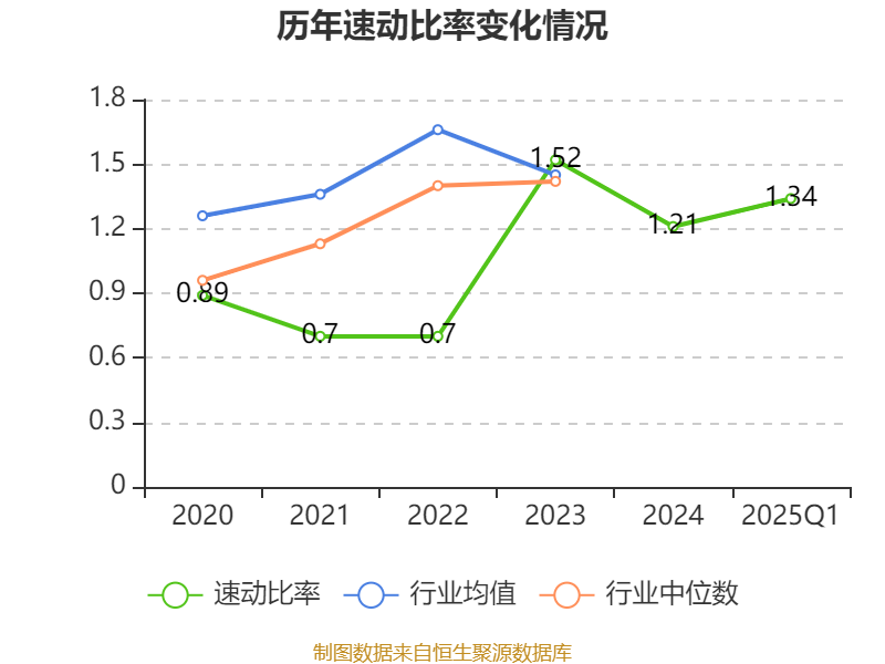 2025年第一季度,公司流动比率为1.36,速动比率为1.34。
