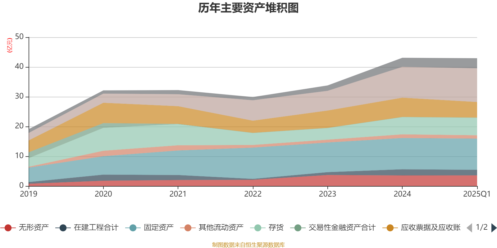 资产重大变化方面,截至2025年一季度末,公司应收票据及应收账款较上年末减少19.41%,占公司总资产比重下降2.89个百分点;货币资金较上年末增加9.43%,占公司总资产比重上升2.36个百分点;预付款项较上年末增加86.49%,占公司总资产比重上升0.54个百分点;在建工程合计较上年末减少9.91%,占公司总资产比重下降0.46个百分点。