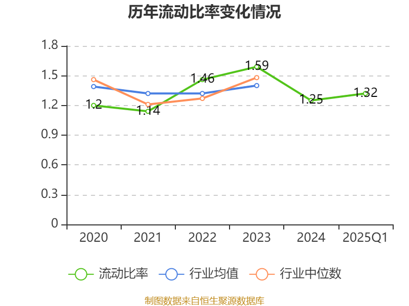 2025年第一季度,公司流动比率为1.32,速动比率为1。