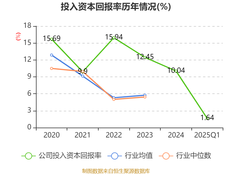 盈利能力方面, 2025年一季度公司加权平均净资产收益率为2.54%,同比上升0.57个百分点。公司2025年第一季度投入资本回报率为1.64%,较上年同期上升0.12个百分点。