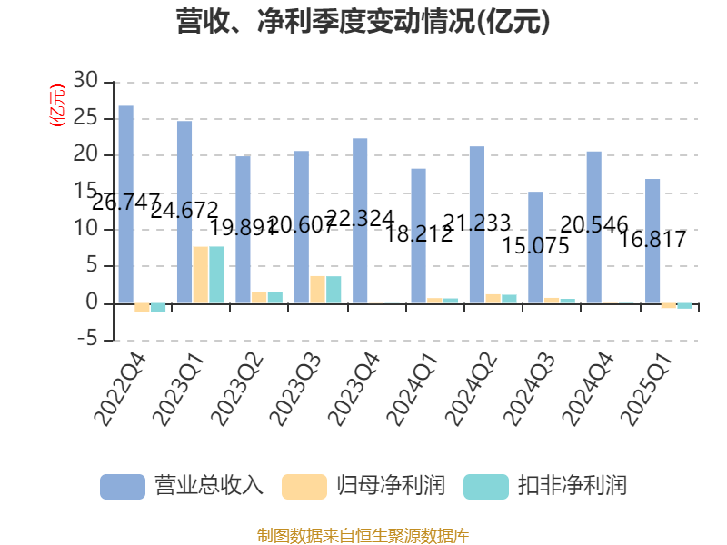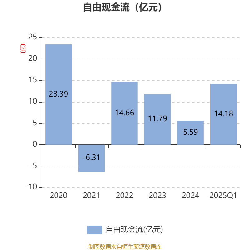 截至2025年一季度末,公司经营活动现金流净额为-2.61亿元,同比增加7.76亿元;筹资活动现金流净额-7.4亿元,同比减少18.04亿元;投资活动现金流净额13.97亿元,上年同期为4.58亿元。