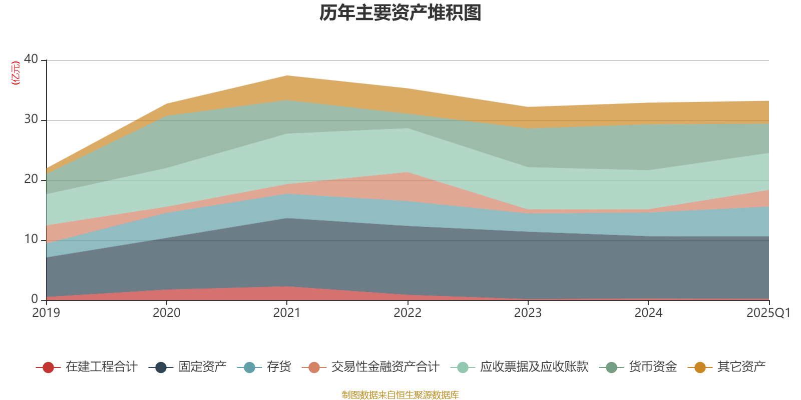 资产重大变化方面,截至2025年一季度末,公司货币资金较上年末减少36.34%,占公司总资产比重下降8.6个百分点;交易性金融资产合计较上年末增加422.45%,占公司总资产比重上升6.73个百分点;存货较上年末增加25.49%,占公司总资产比重上升2.94个百分点;应收票据及应收账款较上年末减少5.25%,占公司总资产比重下降1.21个百分点。