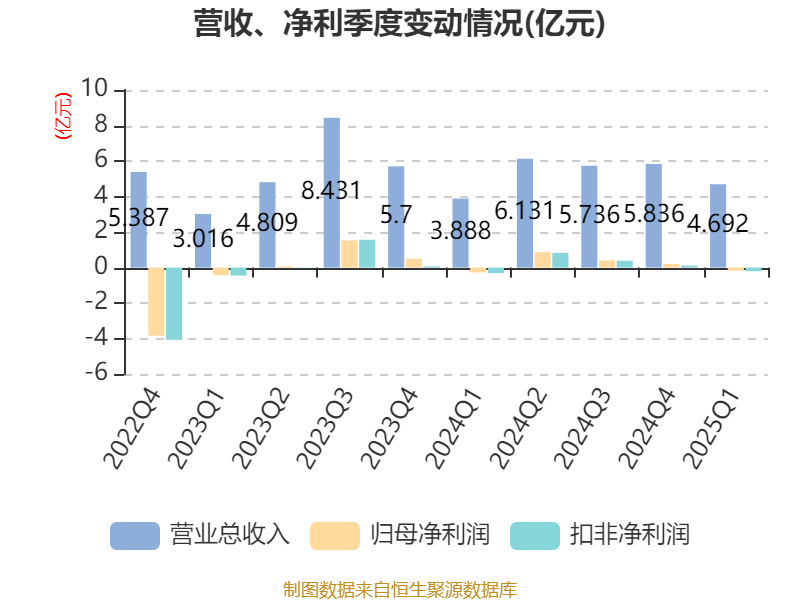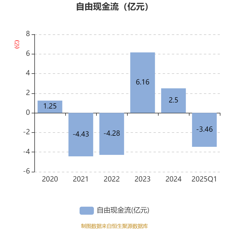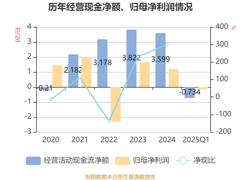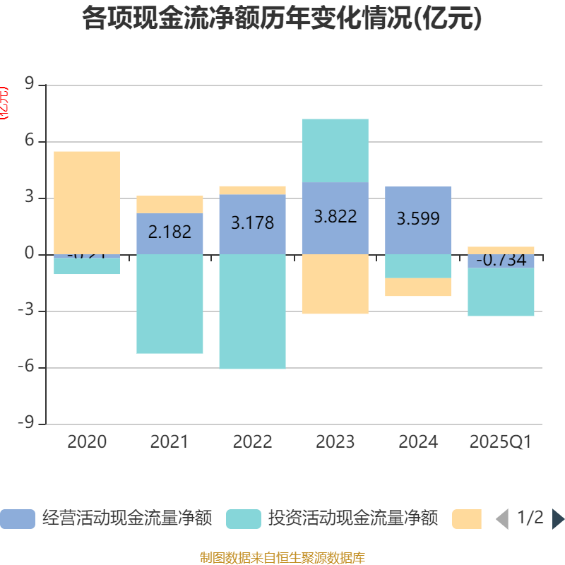 截至2025年一季度末,公司经营活动现金流净额为-7336.38万元,同比减少1.38亿元;筹资活动现金流净额3994.04万元,同比增加4083.67万元;投资活动现金流净额-2.54亿元,上年同期为-1.98亿元。