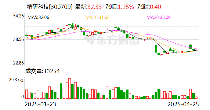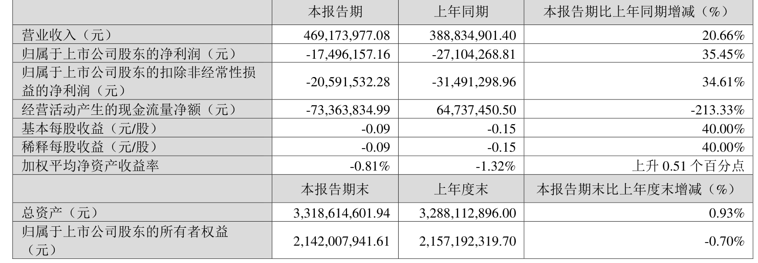 中证智能财讯精研科技(300709)4月25日披露2025年第一季度报告。公司实现营业总收入4.69亿元,同比增长20.66%;归母净利润亏损1749.62万元,上年同期亏损2710.43万元;扣非净利润亏损2059.15万元,上年同期亏损3149.13万元;经营活动产生的现金流量净额为-7336.38万元,上年同期为6473.75万元;报告期内,精研科技基本每股收益为-0.09元,加权平均净资产收益率为-0.81%。