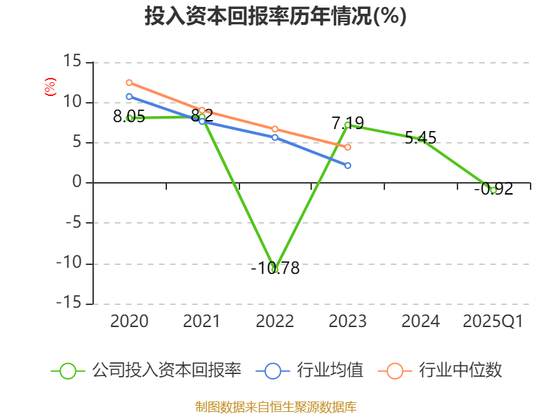 盈利能力方面, 2025年一季度公司加权平均净资产收益率为-0.81%,同比上升0.51个百分点。公司2025年第一季度投入资本回报率为-0.92%,较上年同期上升0.66个百分点。