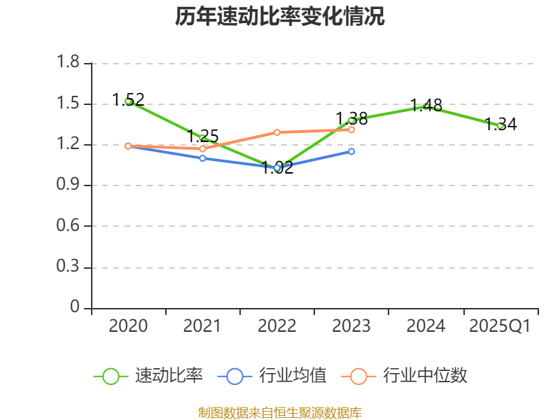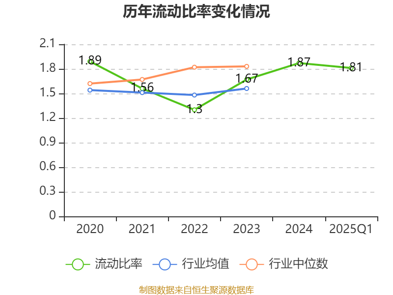 2025年第一季度,公司流动比率为1.81,速动比率为1.34。