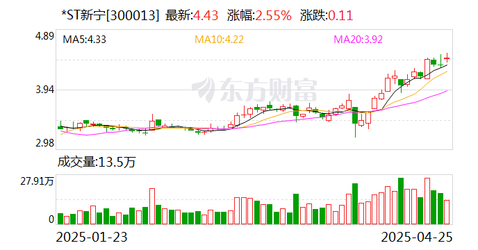 上证报中国证券网讯 4月25日,*ST新宁(维权)披露2025年第一季度报告。一季度,*ST新宁营业收入11081.42万元;归属于上市公司股东的净利润579.42万元,同比扭亏为盈;经营活动产生的现金流量净额1982.52万元,同比由负转正。